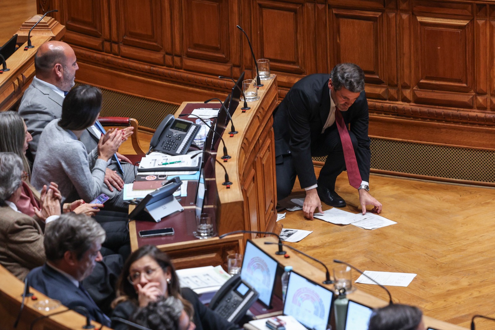 O que se seguiu foi um contra ataque ao estilo de Ventura, que disse que para defender a honra do PS eram precisas resmas de folhas e não o papel pequenino usado por Eurico Brilhante Dias para escrever a intervenção. Ao mesmo tempo que falava, o presidente do Chega foi atirando folhas para o chão. No final da sua intervenção, Ventura foi apanhar as folhas que tinha ao ar numa atitute teatral.