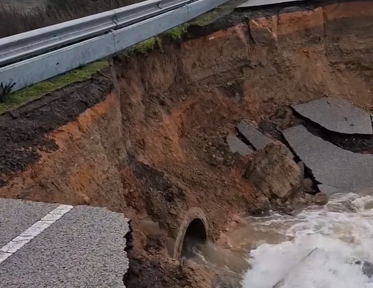 O mau tempo que tem afetado Portugal continental nos últimos dias provocou um grave deslizamento de terras na estrada municipal M1109, que assegura a ligação entre São Torpes e Porto Covo, no concelho de Sines.